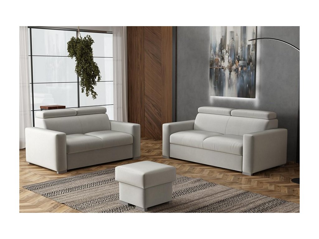 Sedací souprava se stane příjemným centrem odpočinku, nebo setkání s rodinou a přáteli. Je velmi pohodlná, praktická a nabízí dostatek místa k sezení. Pohodlí při sezení zajišťuje výplň sedáků, kterou tvoří kombinace vlnitých pružin s kvalitní PUR pěnou. Při odpočinku, nebo sledování televize Vám zvýší pohodlí polohovací opěrky. Sedací souprava je potažena kvalitní látkou Paros, která je sametově hebká a nežmolkovatí. Je odolná proti UV záření, takže udržuje stálost barev i při denním světle. Vyobrazené doplňky a dekorace nejsou v ceně. Sedací souprava bude dodána v látce, která je zobrazena na úvodních fotografiích.
