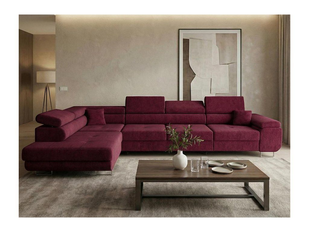 Sedací soupravu nabízíme v levém i pravém provedení. Vyobrazené doplňky a dekorace nejsou v ceně.
