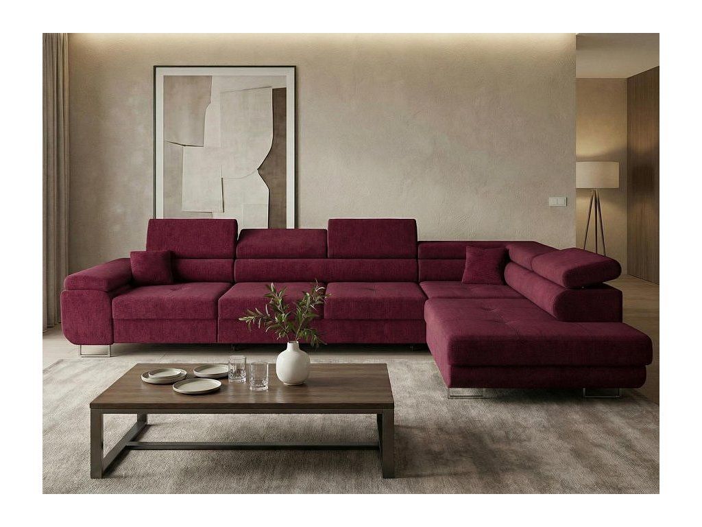 Sedací soupravu nabízíme v levém i pravém provedení. Vyobrazené doplňky a dekorace nejsou v ceně.