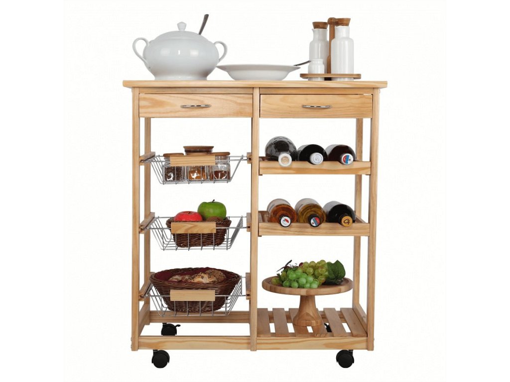 Materiál: keramika / masiv Barva: přírodní Rozměry (ŠxHxV): 67x37x75 cm 3 kovové košíky Košíky se dají vybrat 2 šuplíky otevřená polička 2 poličky na láhve na kolečkách Dodávané v demontu