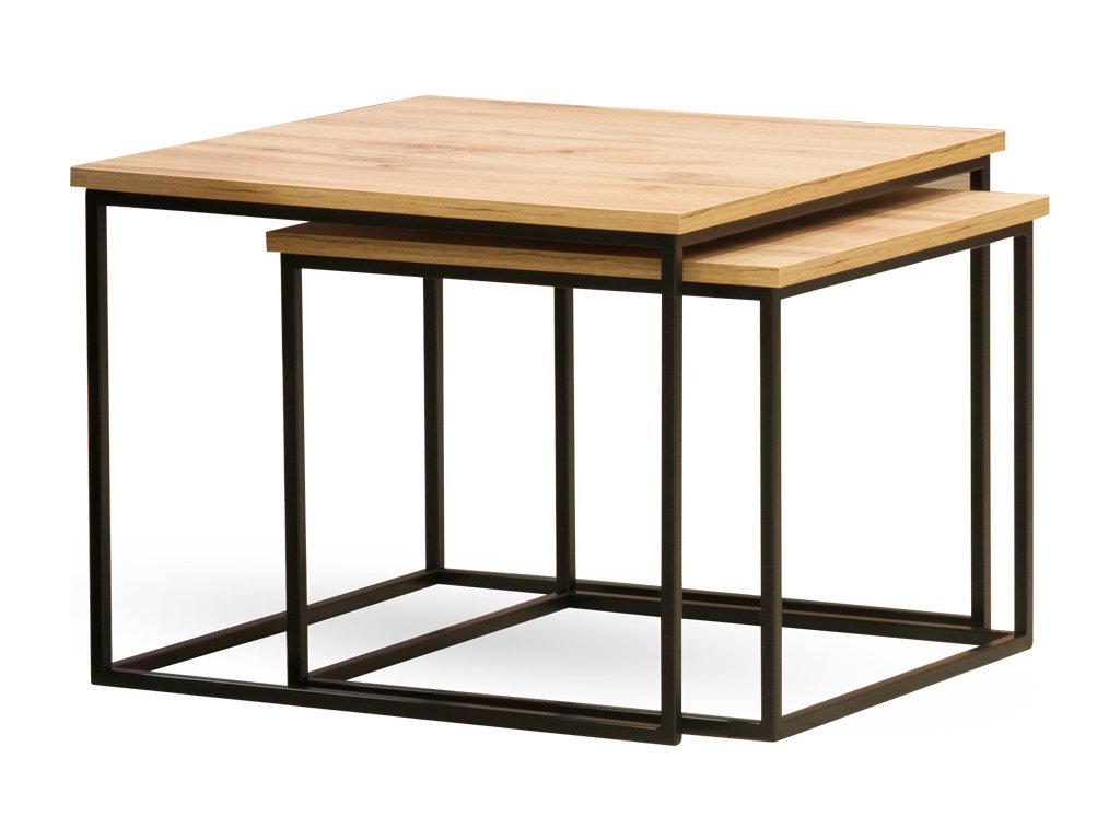 Set konferenčních stolků s možností složit do sebe. 52x52cm výška 42cm a 62x62cm, výška 47cm. Kombinace lamino deska a černá kovová podnož.
