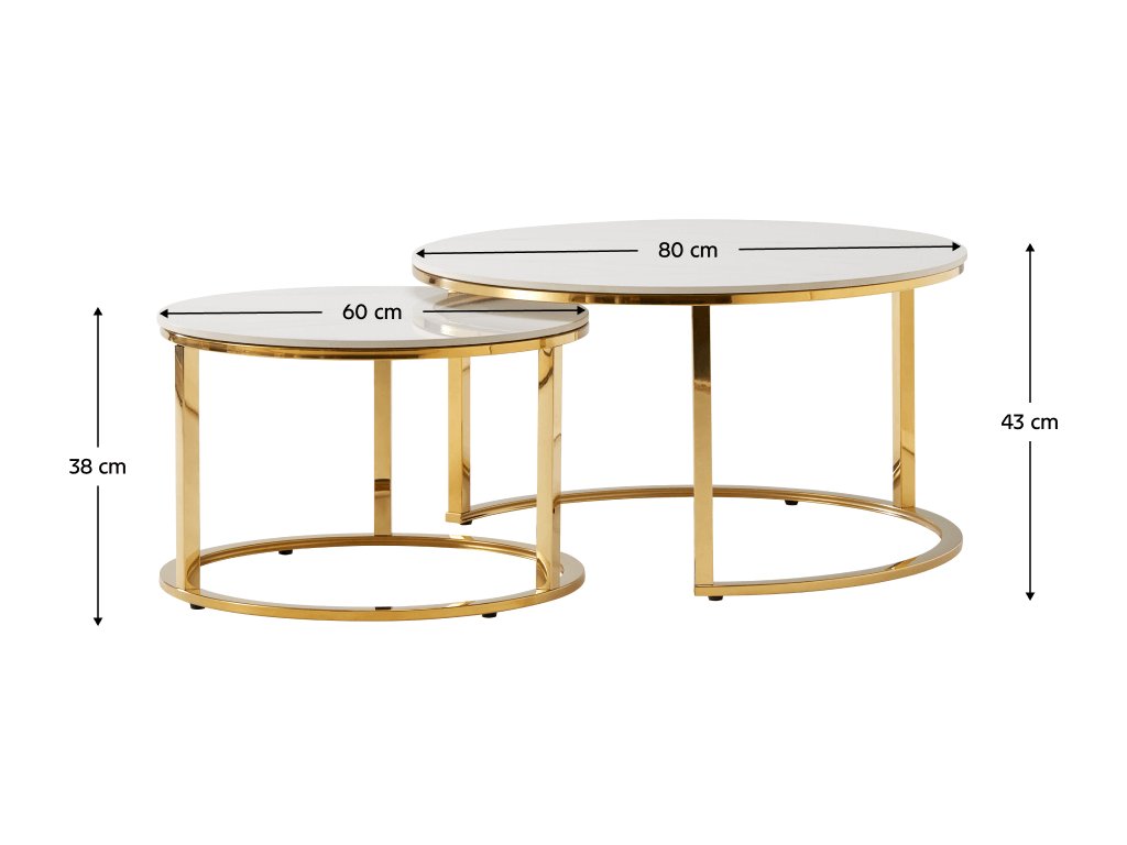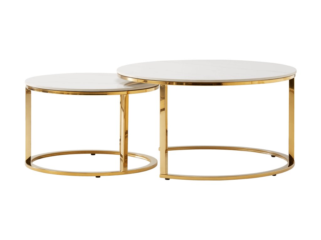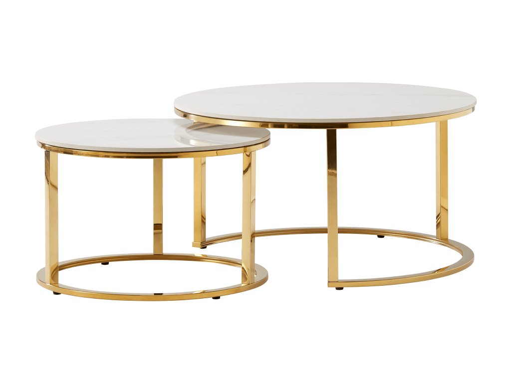 Set 2 ks kulatých konferenčních stolků DEVNET 2 NEW, zlatá/imitace mramoru