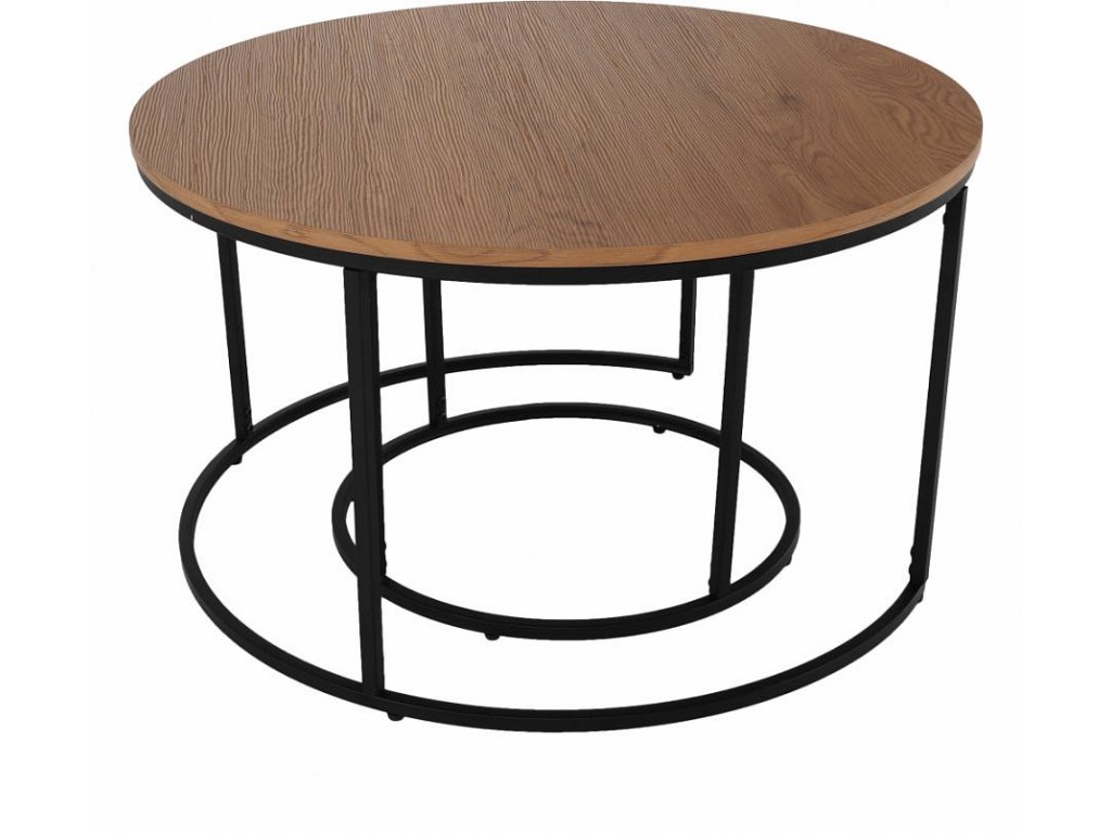 Set 2 ks kulatých konferenčních stolků IKLIN, dub/černý