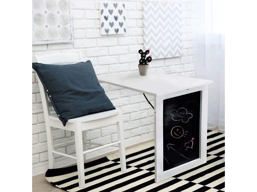 Skládací stůl na zeď, s křídovou tabulí, bílá, ZALMAN
