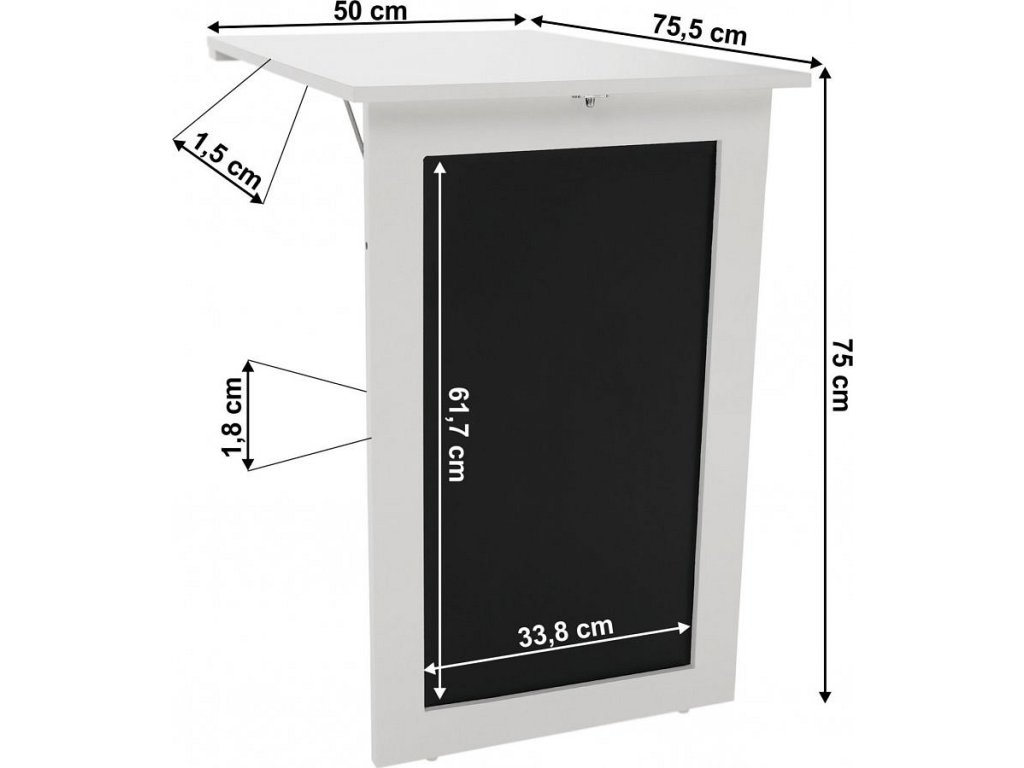 Rozměry složeného stolku (ŠxHxV): 50x8x87,5 cm