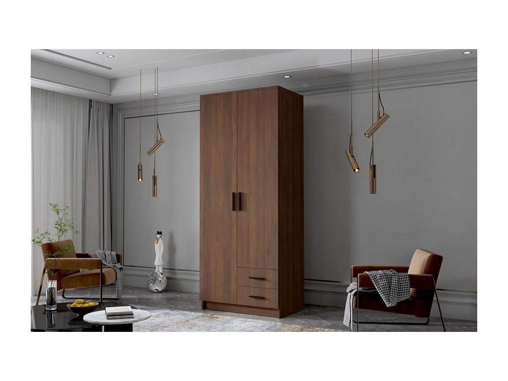Šatní skříň Arya I v moderním designu má šířku 80 cm a je rozdělena na dvě praktické části. Vnitřní uspořádání kombinuje závěsnou tyč, čtyři police a 2 šuplíky, což umožňuje přehledné a praktické rozdělení šatníku.