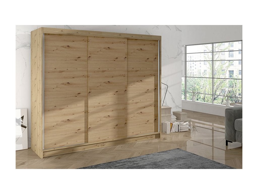 Korpus i dveře jsou vyrobeny z odolné 16 mm laminované desky s ABS hranami, které zajišťují dlouhou životnost. Posuvné dveře se hladce pohybují po hliníkových vodicích lištách. Skříň je dostupná v několika atraktivních barevných provedeních, takže ji snadno sladíte s ostatním nábytkem.