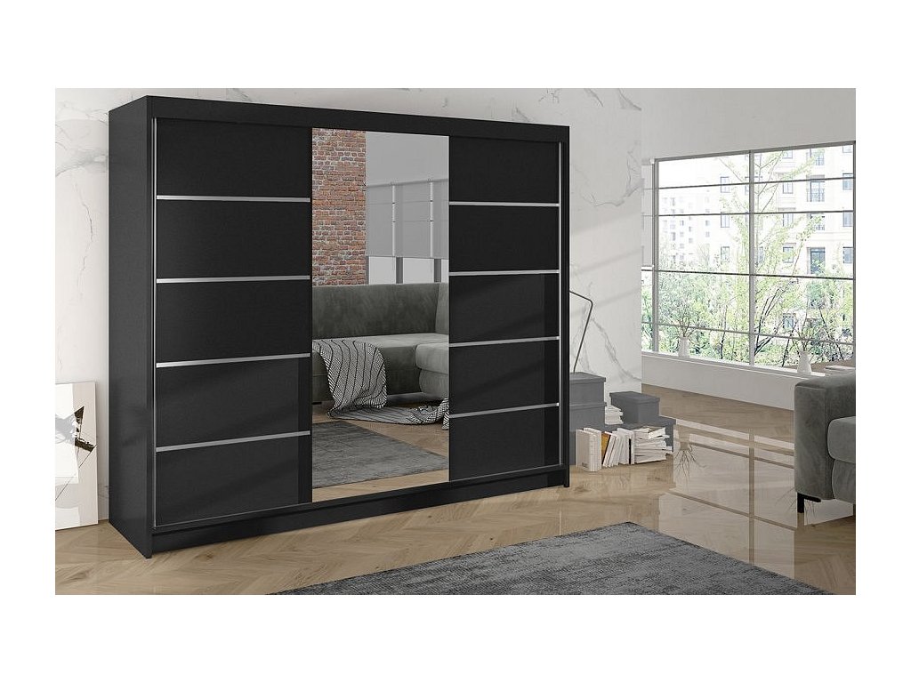 Korpus i dveře jsou vyrobeny z odolné 16 mm laminované desky s ABS hranami, které zajišťují dlouhou životnost. Posuvné dveře se hladce pohybují po hliníkových vodicích lištách. Skříň je dostupná v několika atraktivních barevných provedeních, takže ji snadno sladíte s ostatním nábytkem.