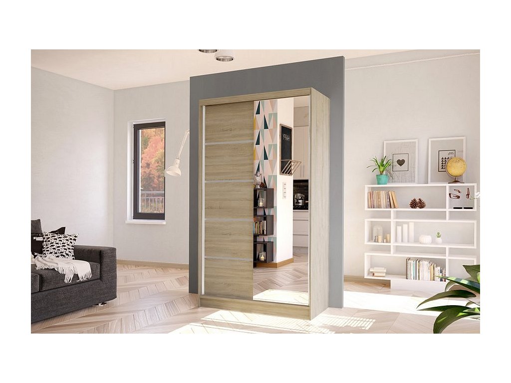 Korpus i dveře jsou vyrobeny z odolné 16 mm laminované desky s ABS hranami, které zajišťují dlouhou životnost. Posuvné dveře se hladce pohybují po hliníkových vodicích lištách. Skříň je dostupná v několika atraktivních barevných provedeních, takže ji snadno sladíte s ostatním nábytkem.