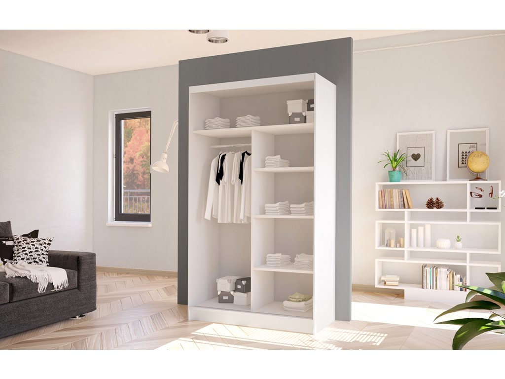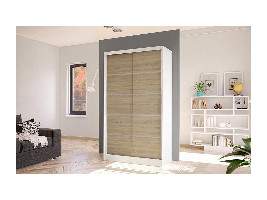 Korpus i dveře jsou vyrobeny z odolné 16 mm laminované desky s ABS hranami, které zajišťují dlouhou životnost. Posuvné dveře se hladce pohybují po hliníkových vodicích lištách. Skříň je dostupná v několika atraktivních barevných provedeních, takže ji snadno sladíte s ostatním nábytkem.