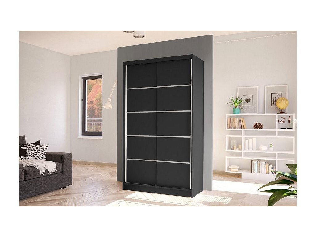 Korpus i dveře jsou vyrobeny z odolné 16 mm laminované desky s ABS hranami, které zajišťují dlouhou životnost. Posuvné dveře se hladce pohybují po hliníkových vodicích lištách. Skříň je dostupná v několika atraktivních barevných provedeních, takže ji snadno sladíte s ostatním nábytkem.