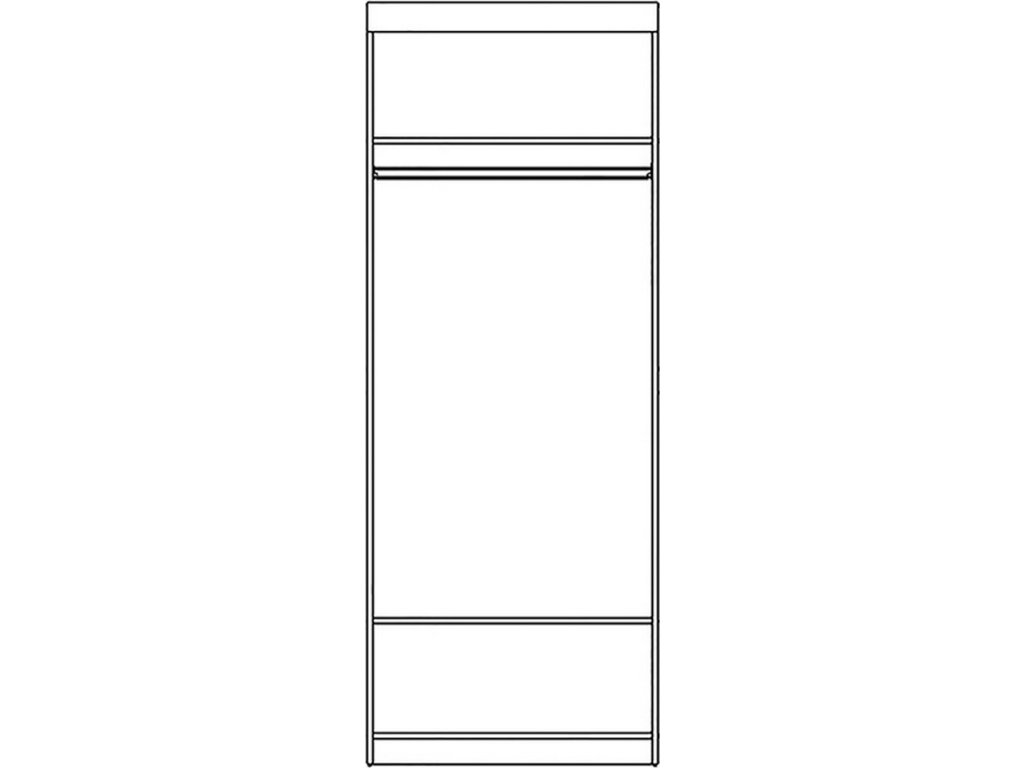 CASA 52014 Šatní skříň dvoudveřová. Korpus je vyroben z desky LTD v barvě bergamo jilm, dvířka jsou vyrobeny z desky MDF v barvě bílá lesk. Uvnitř skříně je šatní tyč a police - viz. perokresba. Dodáváme v demontovaném stavu.