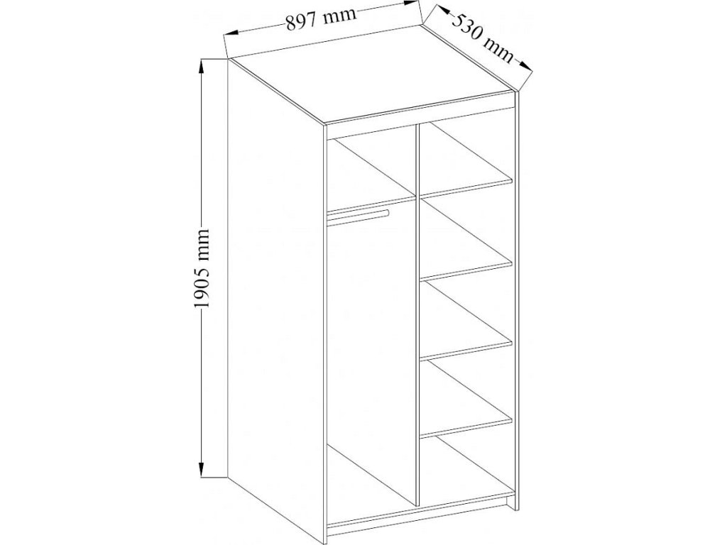 Šatní skříň Enja je vyrobena z kvalitního lamina tl.15 mm, které je odolné a snadné na údržbu. Vnitřní uspořádání skříně je praktické a poskytuje dostatek úložného prostoru. Své uplatnění najde v ložnici, předsíni i v dětském pokoji. Ke skříni lze dokoupit nádstavec. Skříň je dodávaná v demontu a nabízíme ji ve několika barevných provedeních. Součástí balení je montážní plánek včetně všech potřebných spojovacích materiálů.