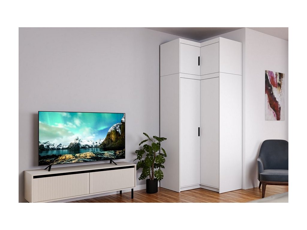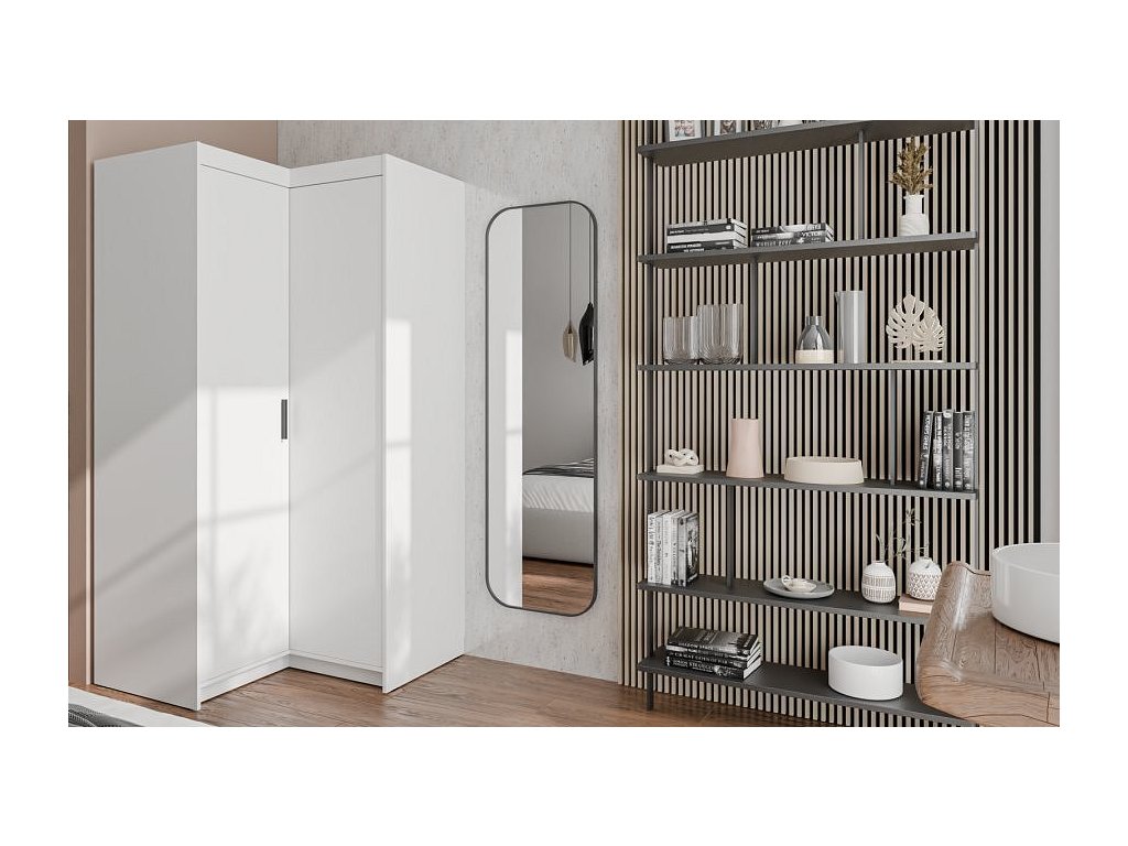 Rohová šatní skříň Enja je vyrobena z kvalitního lamina tl.15 mm, které je odolné a snadné na údržbu. Vnitřní uspořádání skříně je praktické a poskytuje dostatek úložného prostoru. Své uplatnění najde v ložnici, předsíni i v dětském pokoji. Ke skříni lze dokoupit nádstavec. Skříň je dodávaná v demontu a nabízíme ji ve několika barevných provedeních. Součástí balení je montážní plánek včetně všech potřebných spojovacích materiálů.