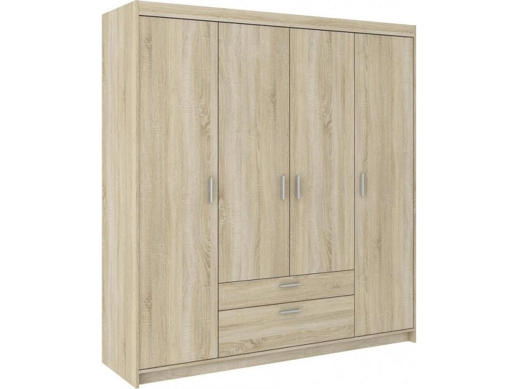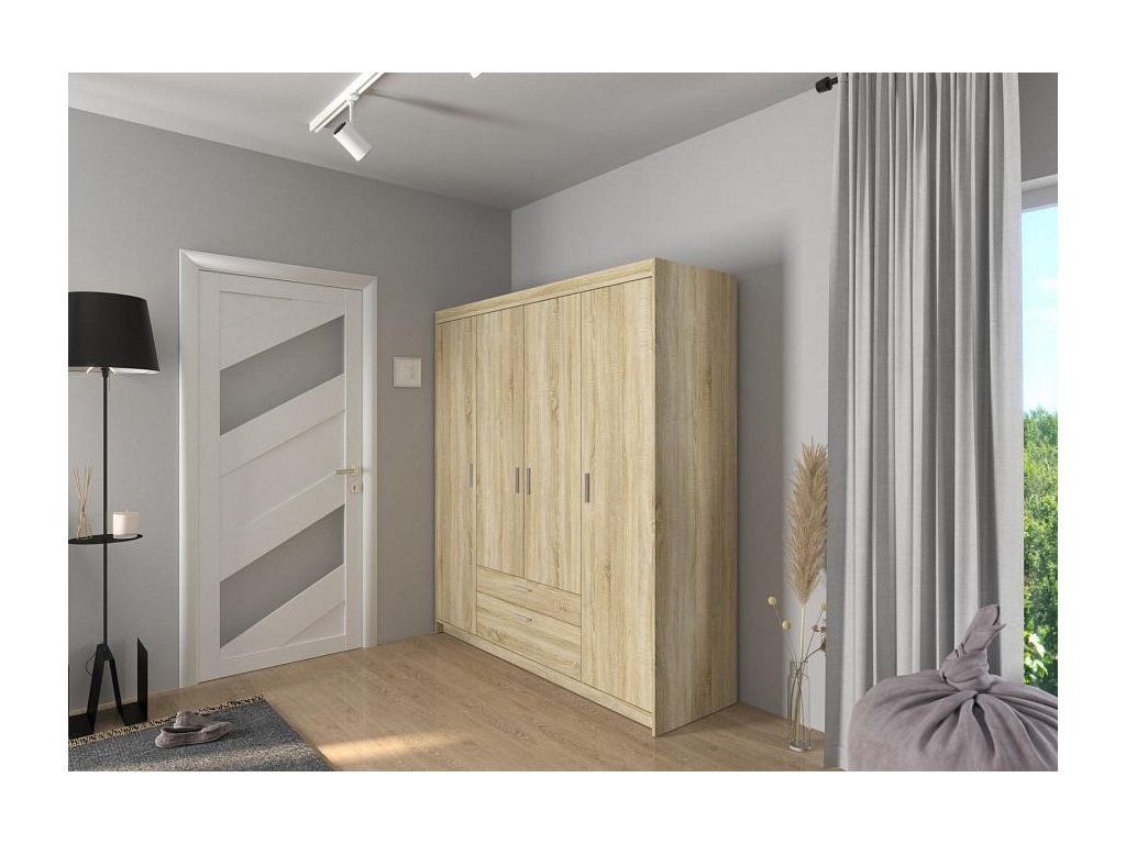 Šatní skříň Enja je vyrobena z kvalitního lamina tl.15 mm, které je odolné a snadné na údržbu. Vnitřní uspořádání skříně je praktické a poskytuje dostatek úložného prostoru. Své uplatnění najde v ložnici, předsíni i v dětském pokoji. Ke skříni lze dokoupit nádstavec. Skříň je dodávaná v demontu a nabízíme ji ve několika barevných provedeních. Součástí balení je montážní plánek včetně všech potřebných spojovacích materiálů.