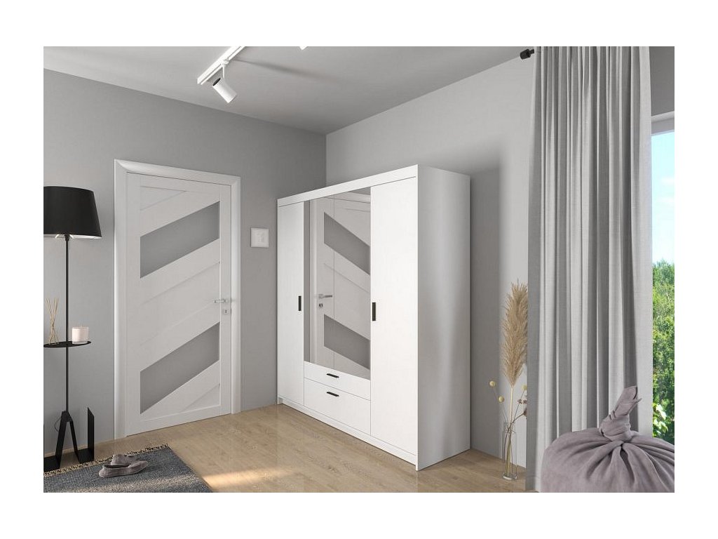 Šatní skříň Enja se zrcadlem je vyrobena z kvalitního lamina tl.15 mm, které je odolné a snadné na údržbu. Vnitřní uspořádání skříně je praktické a poskytuje dostatek úložného prostoru. Své uplatnění najde v ložnici, předsíni i v dětském pokoji. Ke skříni lze dokoupit nádstavec. Skříň je dodávaná v demontu a nabízíme ji ve několika barevných provedeních. Součástí balení je montážní plánek včetně všech potřebných spojovacích materiálů.