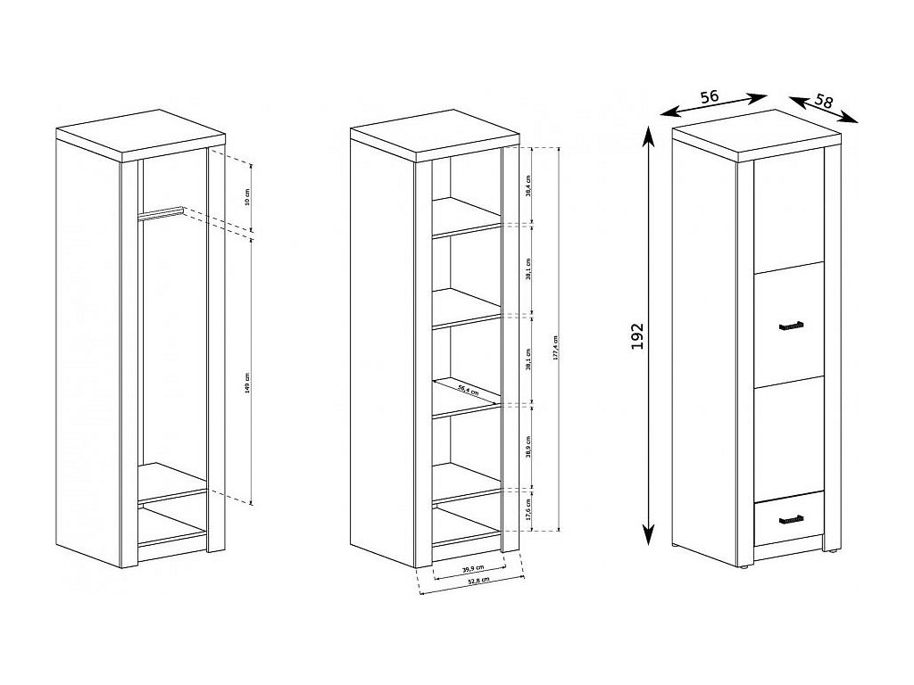 CASA 71007 Skříňka má 1 dveře a 1 zásuvku. Uvnitř skříně je prostor se šatní tyčí. Systém je exkluzivní kolekce navržena v moderním duchu. Celá řada se vyznačuje elegancí a jednoduchými tvary, které zaručují plné využití prostoru. Nábytek je vyroben z kvalitního lamina s ABS hrany ( 0,5-0,8 mm ). Barevné provedení jasan tmavý. Možnost dokoupení 3 polic. Skříň má univerzální otvírání dvířek. Dodáváme v demontovaném stavu.