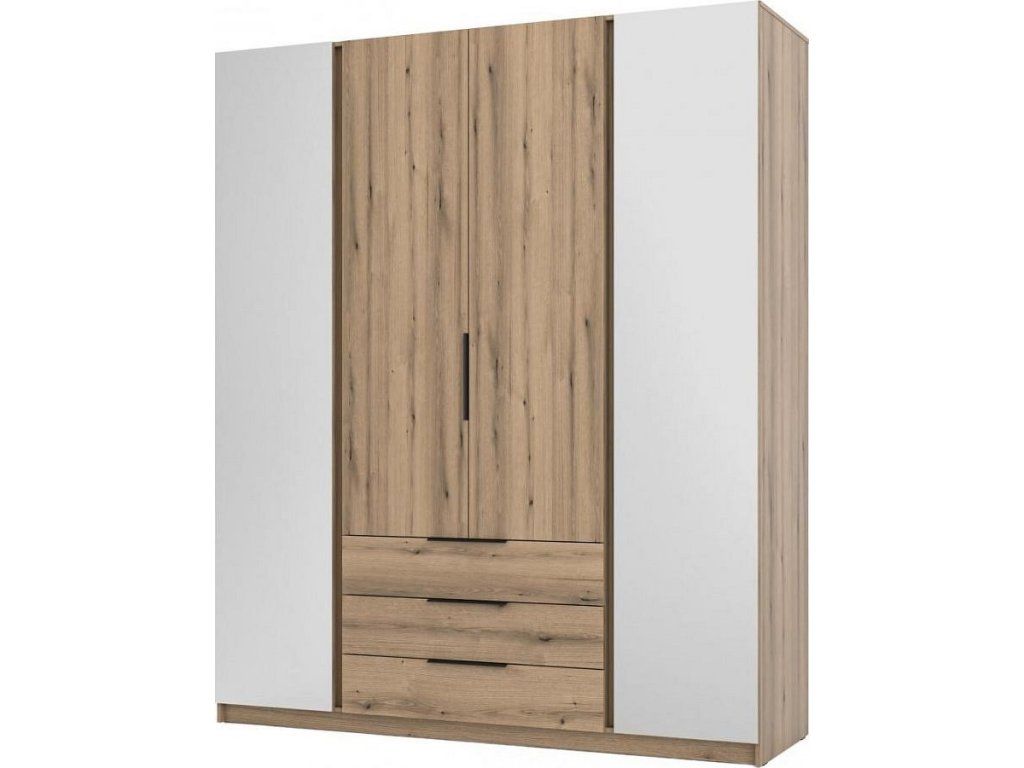 Šatní skříň Keny II v moderním designu má šířku 200 cm a je rozdělena na tři praktické části. Vnitřní uspořádání kombinuje závěsnou tyč, 11 polic a 3 šuplíky, což umožňuje přehledné a praktické rozdělení šatníku.