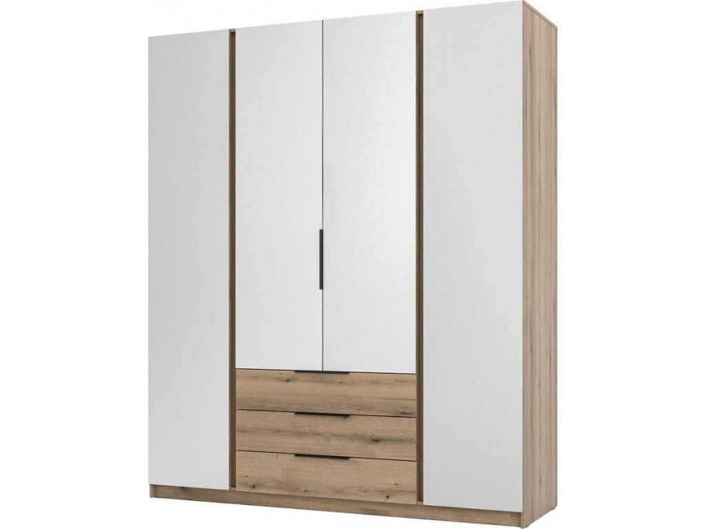 Šatní skříň Keny VI v moderním designu má šířku 200 cm a je rozdělena na tři praktické části. Vnitřní uspořádání kombinuje závěsnou tyč, 11 polic a 3 šuplíky, což umožňuje přehledné a praktické rozdělení šatníku.