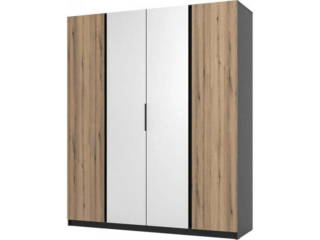 Šatní skříň Keny X v moderním designu má šířku 200 cm a je rozdělena na tři praktické části. Vnitřní uspořádání kombinuje závěsnou tyč a 11 polic, což umožňuje přehledné a praktické rozdělení šatníku.