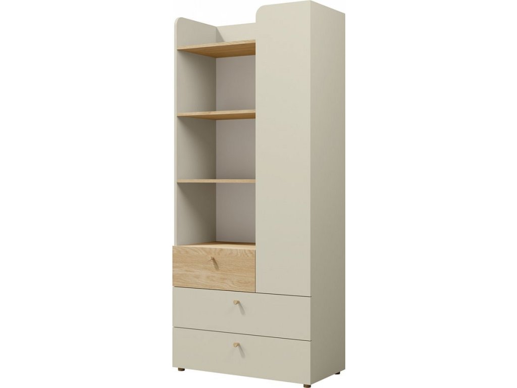 Skříň s regálem Yuva R3 je vyrobena z kvalitního lamina v krásném dekoru přírodního dubu a šedobéžové barvy. Lamino je odolné a jistě oceníte jeho snadnou údržbu. Skříň je dodávaná v demontu. Součástí balení je montážní návod včetně všech spojovacích prvků.