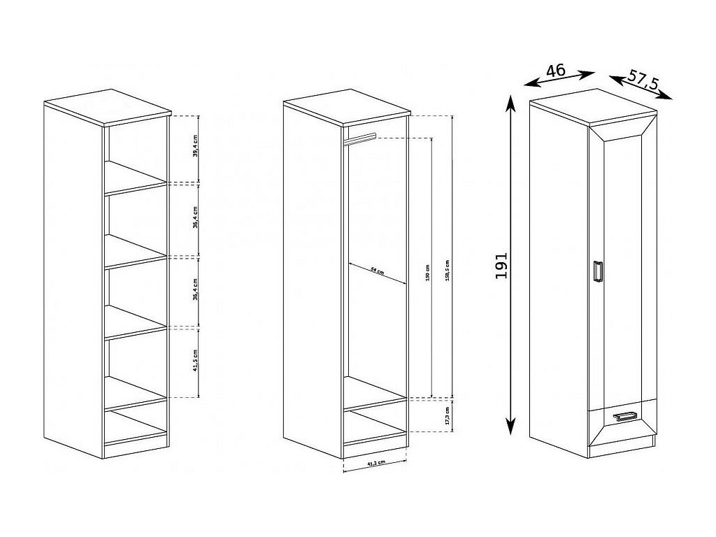 CASA 71013 Skříň jednodveřová s 1 zásuvkou, pravá ze sektorové řady. Skříň má 1 dveře a 1 praktickou zásuvku, uvnitř je volný prostor se šatní tyčí. Systém je exkluzivní kolekce navržena v duchu vintage. Celá řada se vyznačuje elegancí a jednoduchými tvary, které zaručují plné využití prostoru. Nábytek je vyroben z velmi kvalitní LTD o tloušťce 16 mm, horní deska zesílena na 32 mm, lišty na čele nábytku jsou MDF, hrany ABS. Tvrzené sklo ve vitrínách je jemně zdobené. Elegantní úchyty jsou z kovu. Barevné provedení dub stoletý. Dodáváme v demontovaném stavu.