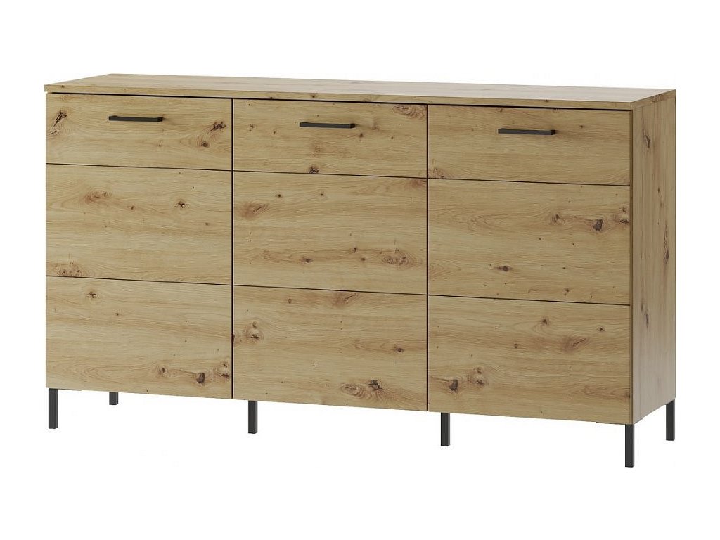 Moderní třídveřová komoda LUCAS 36 v dekoru dub artisan v kombinaci s černou. Díky svému uspořádání poskytuje dostatek úložného prostoru. Komodu je možné doplnit o další komponenty z řady LUCAS ve stejném designu. Úchyty jsou z černého plastu, nožky jsou černé kovové. Dodáváme v demontovaném stavu. CASA 75091