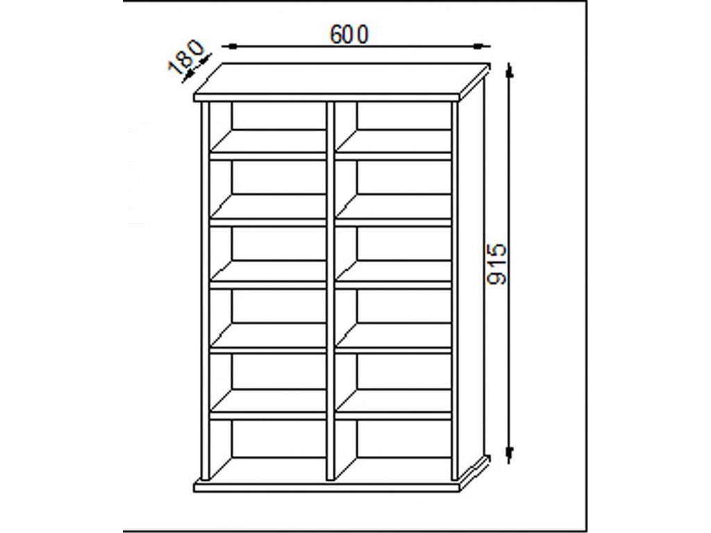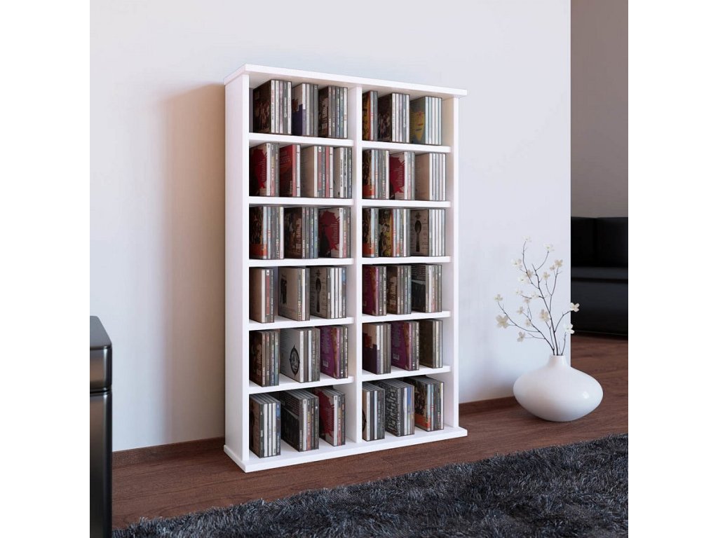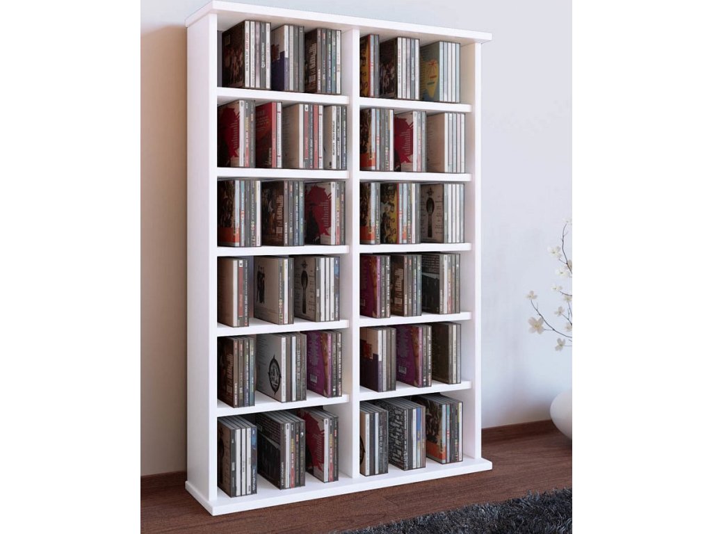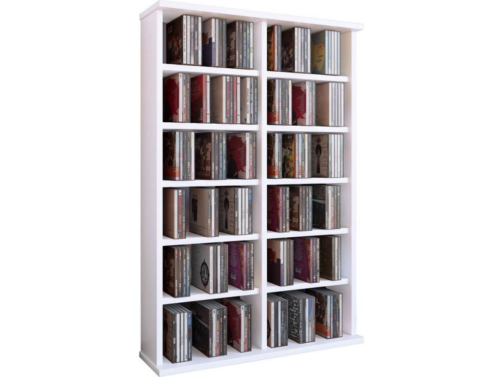 Otevřená regálová skříňka s 10 variabilními policemi nabízí možnost uložit až 300 CD, 130 DVD nebo 72 VHS. Stabilitu zajišťuje pevná zadní stěna. Lze neomezeně rozšiřovat připojením dalších skříněk.