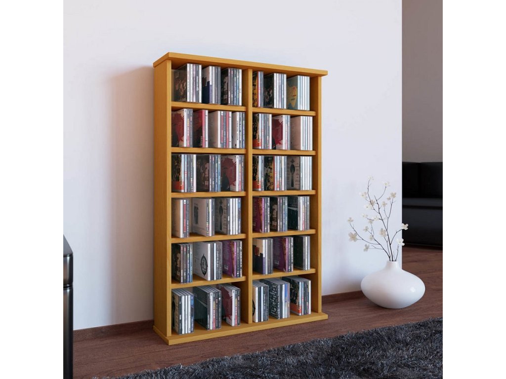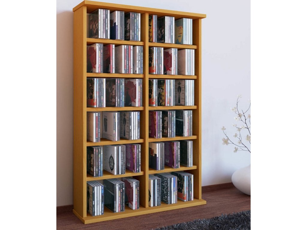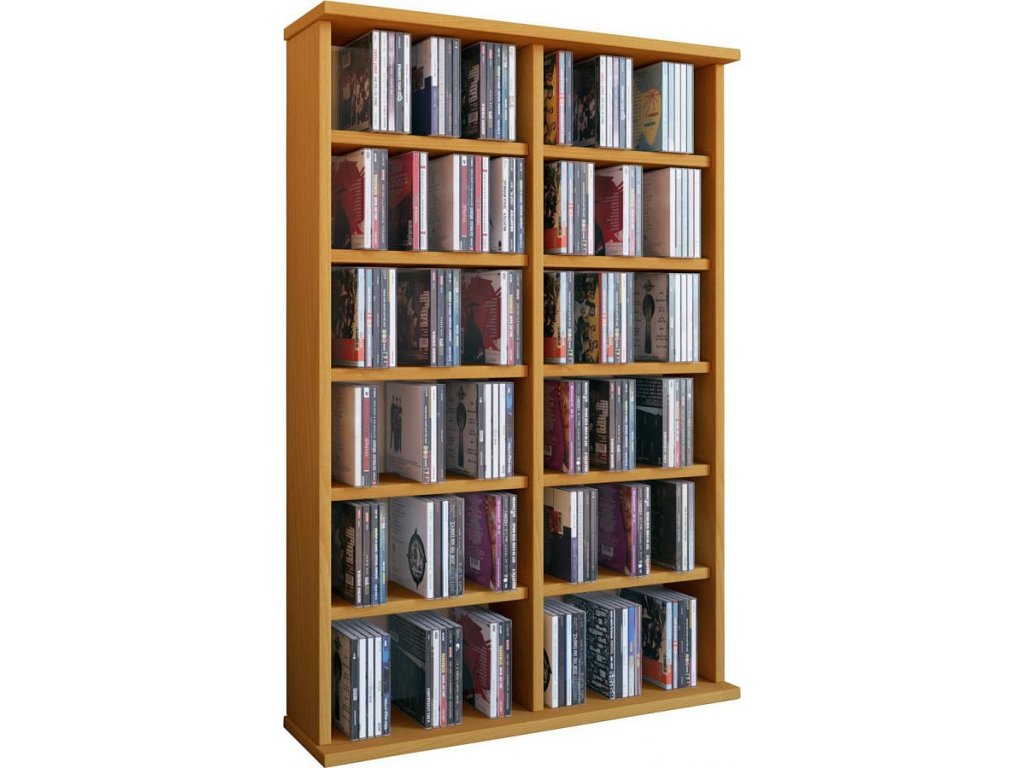 Otevřená regálová skříňka s 10 variabilními policemi nabízí možnost uložit až 300 CD, 130 DVD nebo 72 VHS. Stabilitu zajišťuje pevná zadní stěna. Lze neomezeně rozšiřovat připojením dalších skříněk.