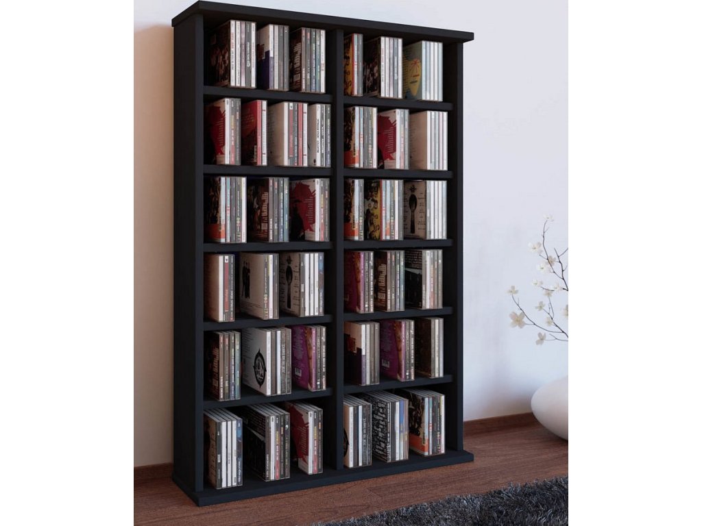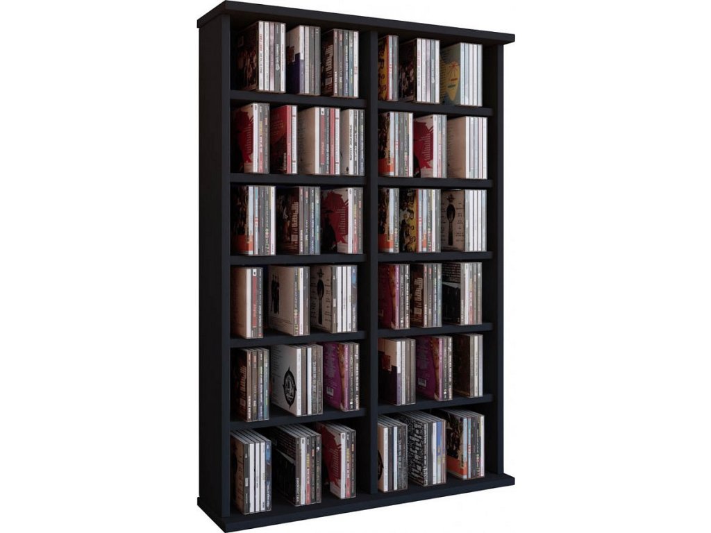 Otevřená regálová skříňka s 10 variabilními policemi nabízí možnost uložit až 300 CD, 130 DVD nebo 72 VHS. Stabilitu zajišťuje pevná zadní stěna. Lze neomezeně rozšiřovat připojením dalších skříněk.
