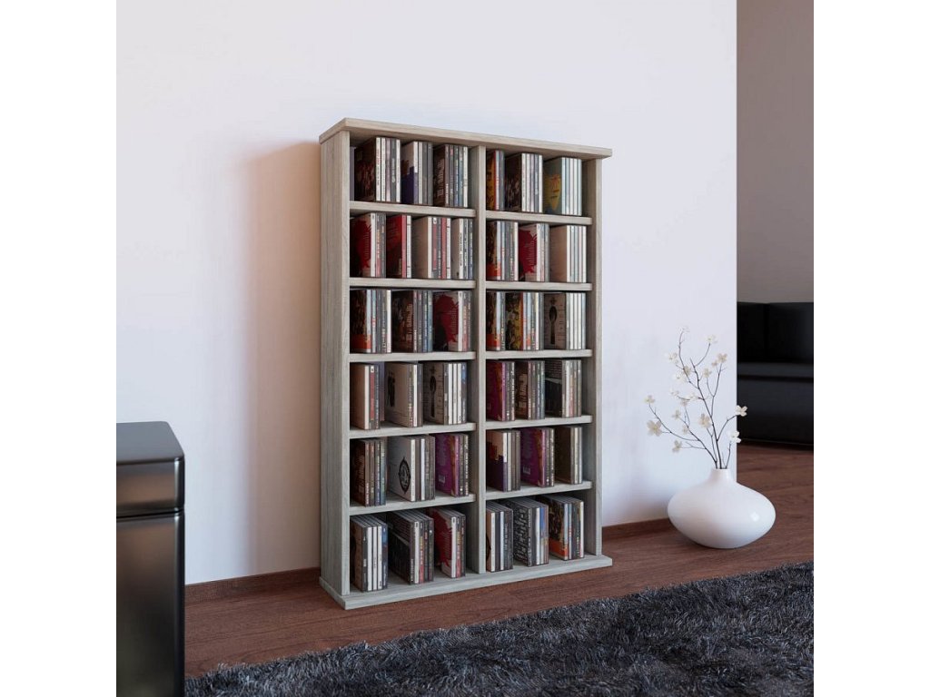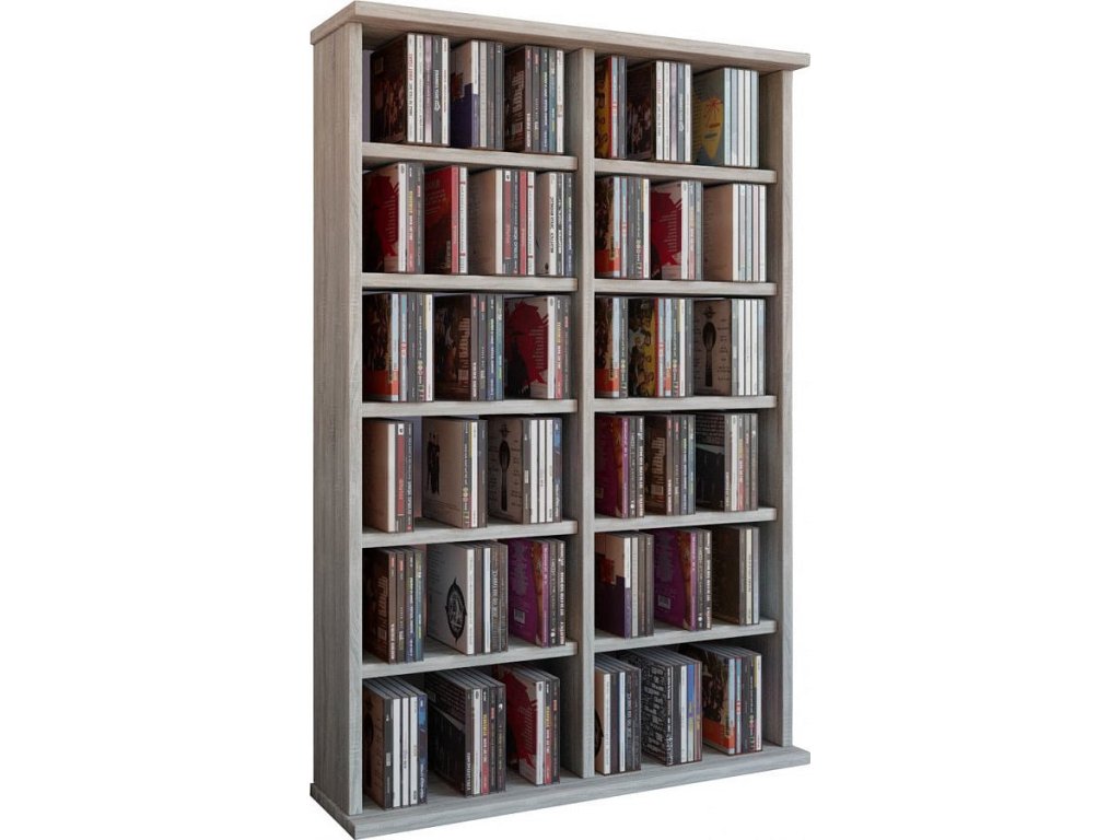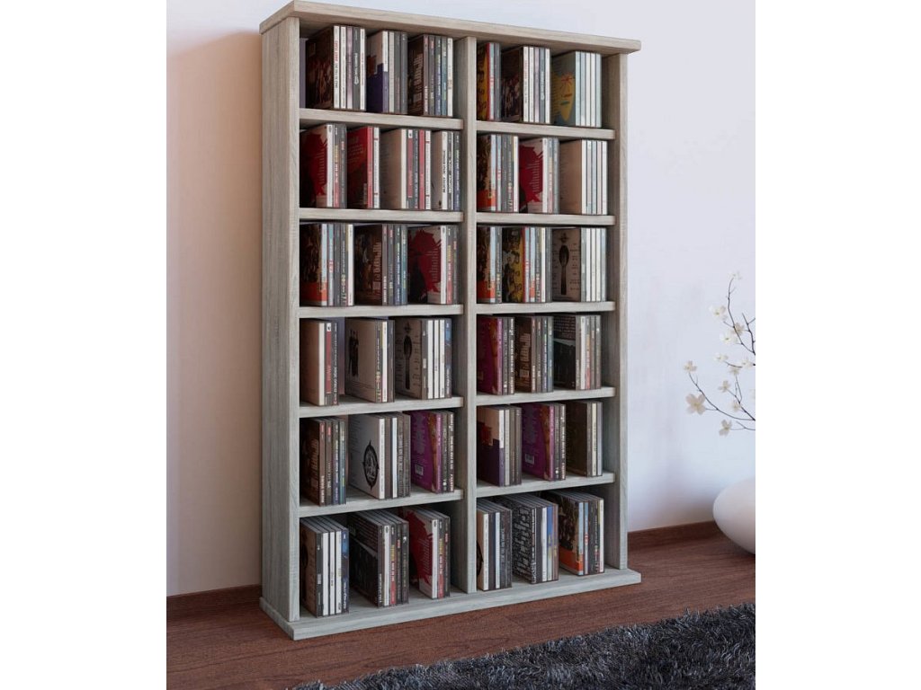 Otevřená regálová skříňka s 10 variabilními policemi nabízí možnost uložit až 300 CD, 130 DVD nebo 72 VHS. Stabilitu zajišťuje pevná zadní stěna. Lze neomezeně rozšiřovat připojením dalších skříněk.