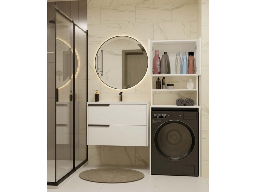 Moderní koupelnová skříňka Pema MULTI v minimalistickém designu je dokonalým řešením pro malé koupelny. Splní očekávání všech, kteří oceňují praktická řešení. Skříňka má 1 policI skrytou za dvířky, 1 polici otevřenou a je vyrobená ze snadno udržovatelné laminované desky. Hrany jsou povrchově upravené ABS plastem (vyznačuje se vysokou mechanickou a chemickou odolností).