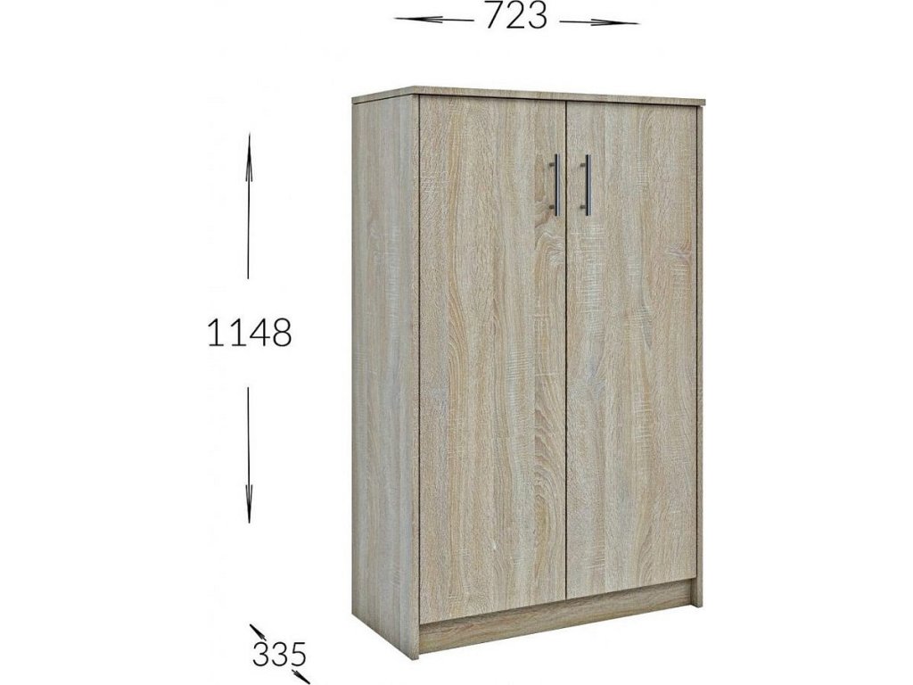 CASA 83083 Praktická komoda dvoudveřová vhodná na zakládaní šanonů, knih a jiných pracovních dokumentů. Korpus i dvířka jsou z kvalitní LTD v barvě dub sonoma. Dodáváme v demontovaném stavu.