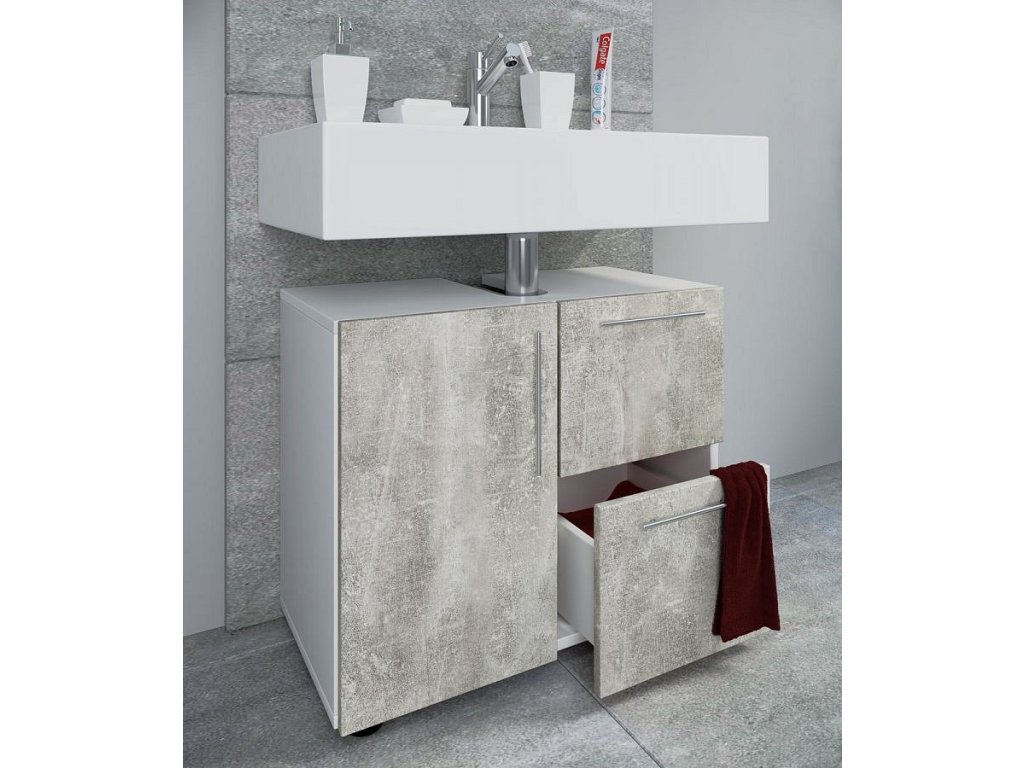 Moderní koupelnová skříňka Flandu od značky VCM je praktický a stylový kousek nábytku do koupelny, který se díky svému provedení hodí do každého interiéru. Jako koupelnová skříňka pod umyvadlo nabízí dostatek úložného prostoru díky dvěma hladce výsuvným zásuvkám a jedněm otočným dvířkům, takže všechny koupelnové potřeby máte vždy po ruce. Kvalitní melaminový povrch je odolný vůči vlhkosti a velmi snadno se udržuje, což je ideální pro koupelnový nábytek, který musí zvládat každodenní provoz.