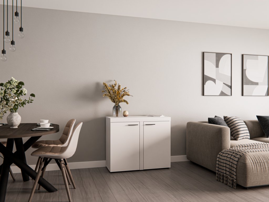 Skříňka 2D je nejen skvělým doplňkem k bytové stěně RIZO, ale výborně poslouží jako samostatný kus nábytku. Má univerzální využití a nabízí dostatek úložného prostoru. Nábytek je vyroben z odolného lamina v bílém provedení. Skříňku je možné doplnit o další komponenty z řady RIZO ve stejném designu. Vlivem nastavení monitorů, nebo displejů telefonů, se zobrazení barev na fotografii může od skutečnosti lišit.