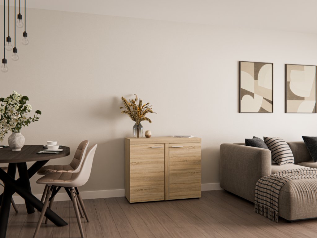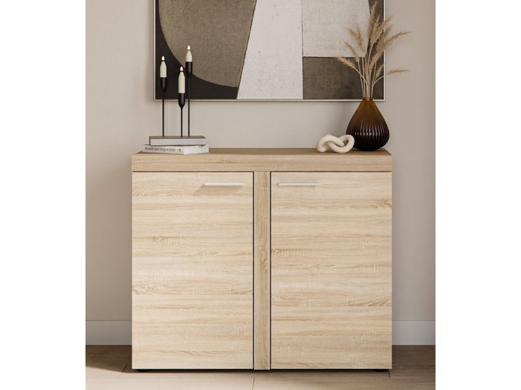 Skříňka 2D je nejen skvělým doplňkem k bytové stěně RIZO, ale výborně poslouží jako samostatný kus nábytku. Má univerzální využití a nabízí dostatek úložného prostoru. Nábytek je vyroben z odolného lamina v dekoru dub sonoma. Skříňku je možné doplnit o další komponenty z řady RIZO ve stejném designu. Vlivem nastavení monitorů, nebo displejů telefonů, se zobrazení barev na fotografii může od skutečnosti lišit.