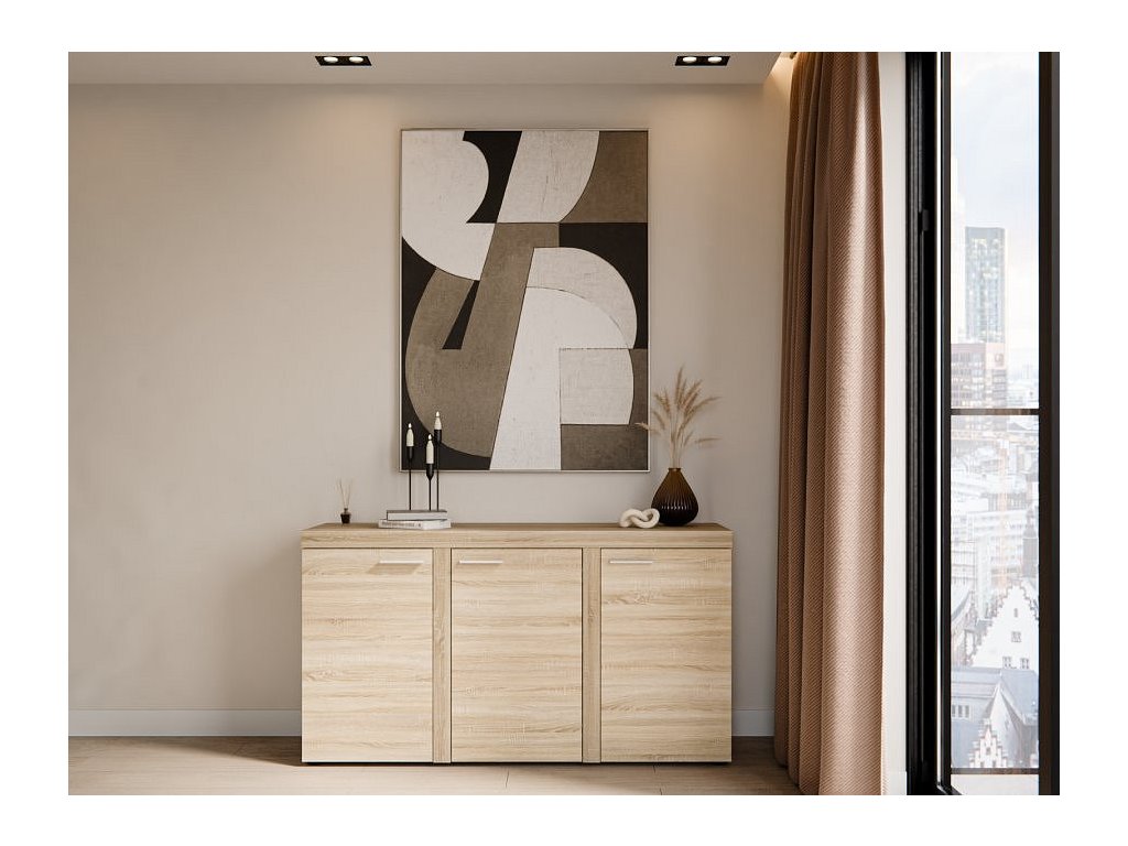 Skříňka 3D je nejen skvělým doplňkem k bytové stěně RIZO, ale výborně poslouží jako samostatný kus nábytku. Má univerzální využití a nabízí dostatek úložného prostoru. Nábytek je vyroben z odolného lamina v dekoru dub sonoma. Skříňku je možné doplnit o další komponenty z řady RIZO ve stejném designu. Vlivem nastavení monitorů, nebo displejů telefonů, se zobrazení barev na fotografii může od skutečnosti lišit.