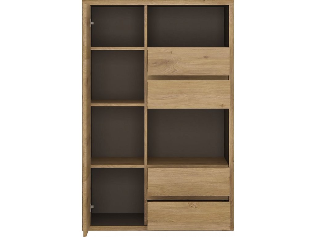 Skříňka TYP 31 z elegantní kolekce SHELDON. Tento nábytek vás okouzlí krásným moderním stylem s minimalistickým přístupem k designu. Je vyrobena z laminované DTD odolné vůči poškrábání, UV záření či vysokým teplotám. Tloušťka použitého materiálu u korpusu 2,8 cm Celá kolekce je v dekoru dub shetland. Skříňka disponuje 4 zásuvkami a skříňkou. Nabízí tak dostatek úložného prostoru. Doporučujeme přikoupit další komponenty ze sestavy SHELDON. Dodáváme v demontu.