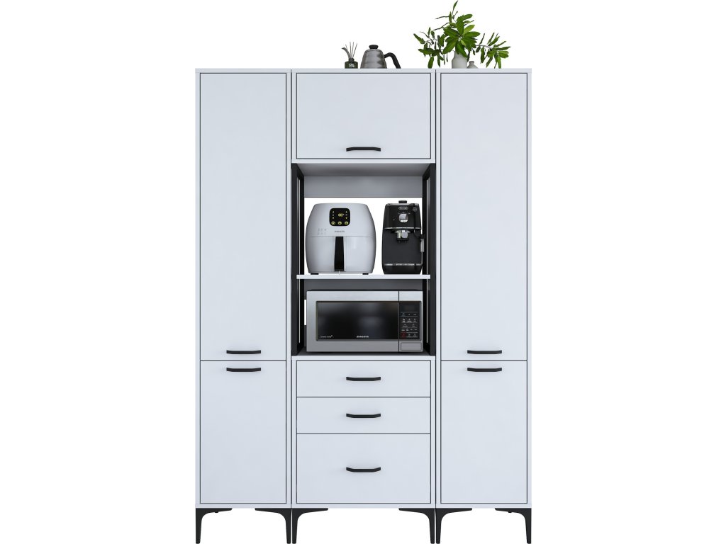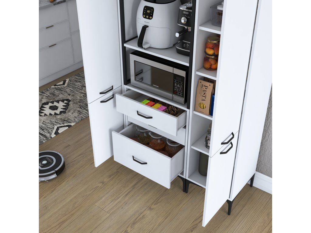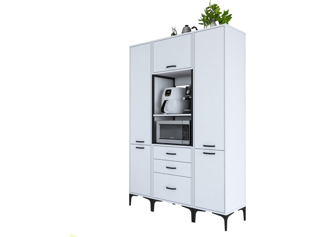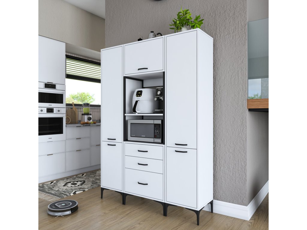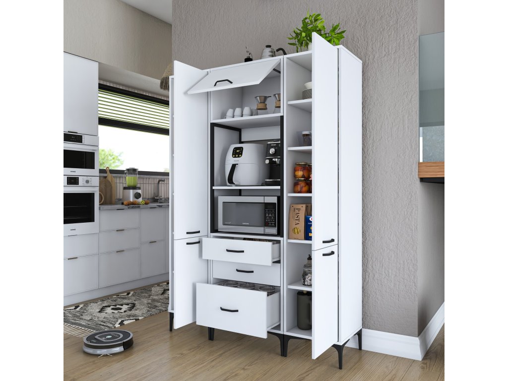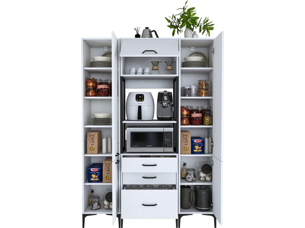 Policová skříň kombinuje funkčnost a moderní skandinávský styl, který přinese do vaší kuchyně čistý a elegantní vzhled. S bílým provedením a promyšleným designem poskytuje praktické úložné řešení pro každý domov.
