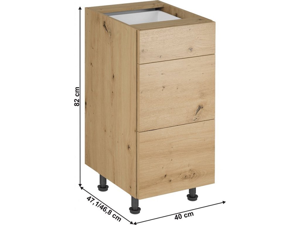 Spodní kuchyňská skříňka LANGEN D40S3 se šuplíky PUSH UP, dub artisan