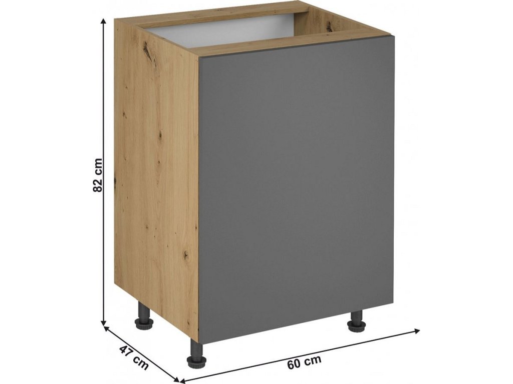 Spodní kuchyňská skříňka LANGEN D60, levá, dub artisan/šedý mat