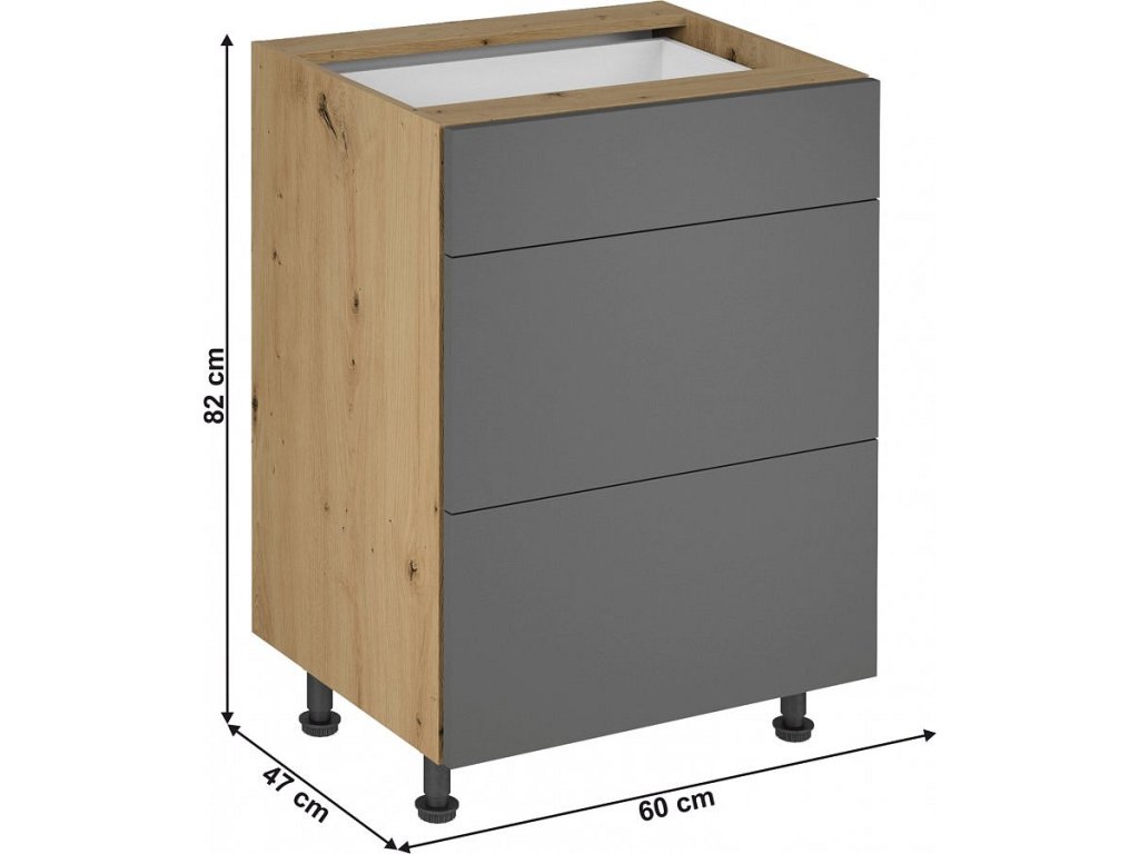 Spodní kuchyňská skříňka LANGEN D60S3 se šuplíky PUSH UP, dub artisan/šedý mat