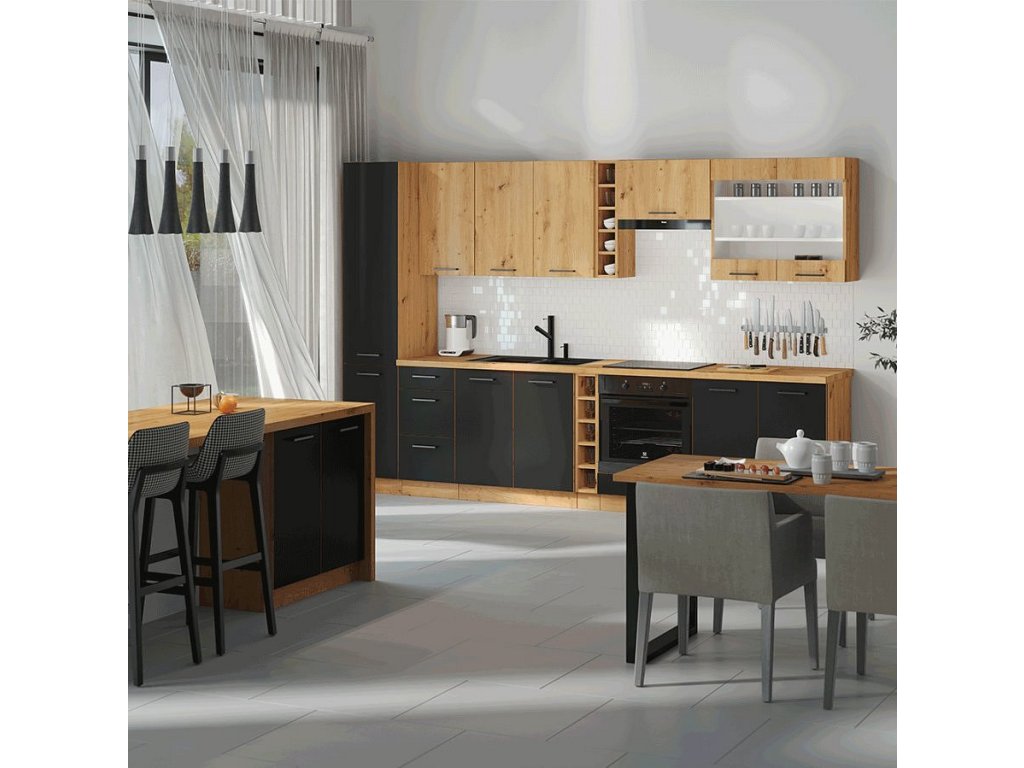 Spodní kuchyňská skříňka MONRO 15 D CARGO s výsuvným košem, černý mat/dub artisan