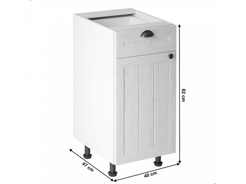 Spodní kuchyňská skříňka PROVANCE D40S1, 1-dveřová se zásuvkou, levá, bílá/sosna andersen