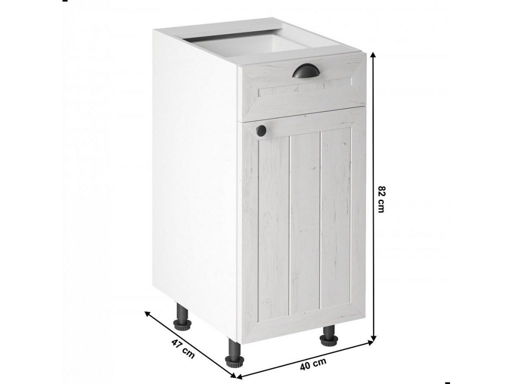 Spodní kuchyňská skříňka PROVANCE D40S1, 1-dveřová se zásuvkou, pravá, bílá/sosna andersen