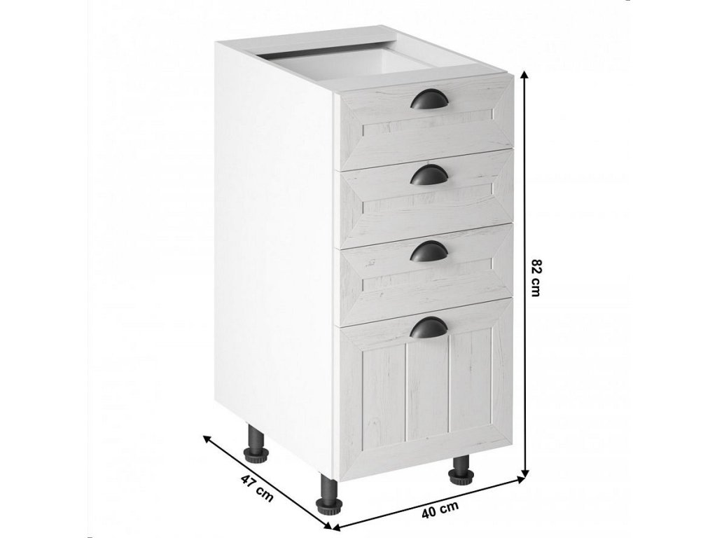Spodní kuchyňská skříňka PROVANCE D40S4 se šuplíky, bílá/sosna andersen
