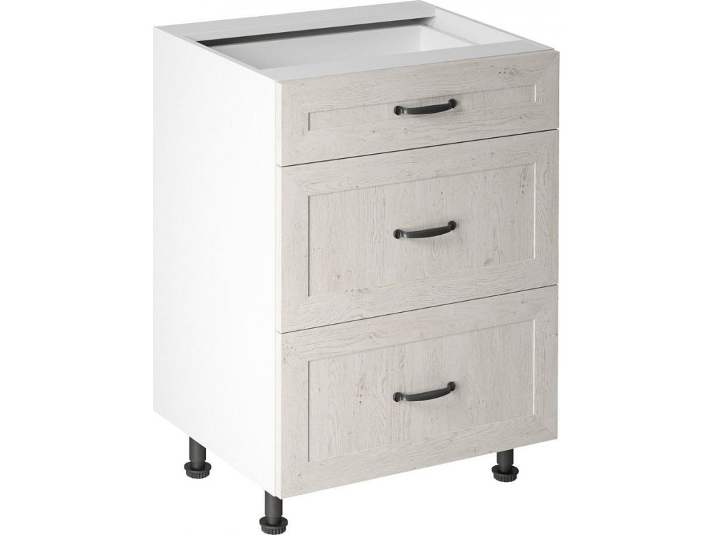 Spodní kuchyňská skříňka ROYAL D60S3 se šuplíky, bílá/sosna skandinávská