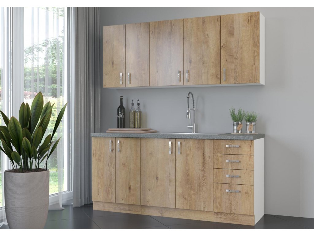 Spodní kuchyňská skříňka Sally 80 D je vyrobena z lamina tloušťky 16 mm bílé barvy a s dvířky v odstínu dub lefkas. Vyberte si z naší široké nabídky skříněk a vytvořte si kuchyň dle vlastních představ. Může být rohová, rovná, krátká i dlouhá. Fantazii se meze nekladou. V doplňkových fotografiích najdete pro inspiraci fotky kuchyní, které jsou z těchto skříněk sestaveny. Skříňka je dodávaná v demontu bez pracovní desky. Součástí je montážní plánek včetně všech potřebných spojovacích materiálů.