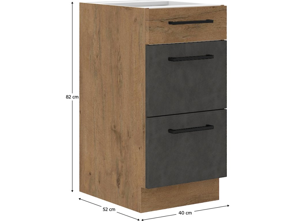 Spodní kuchyňská skříňka VEGA 40 D 3S BB se šuplíky, šedá mat/dub lancelot