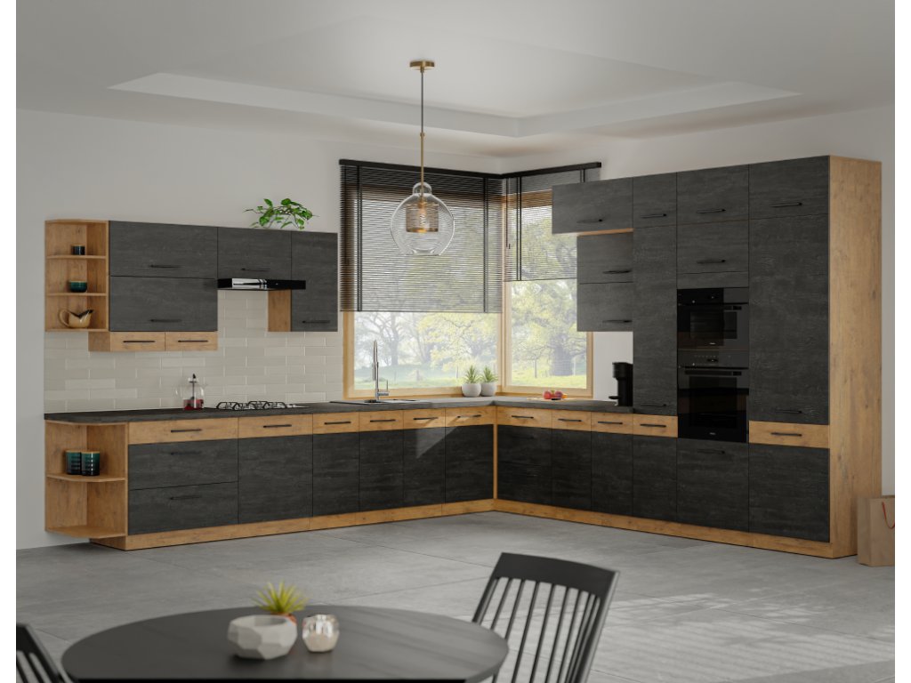 Spodní skříňky jsou dodávány včetně dolní lišty, bez pracovní desky. Možnost dokoupit pracovní desku dub lancelot v ceně: 1590 Kč/bm. Možnost dokoupit univerzální L / P dřez LAY ON.